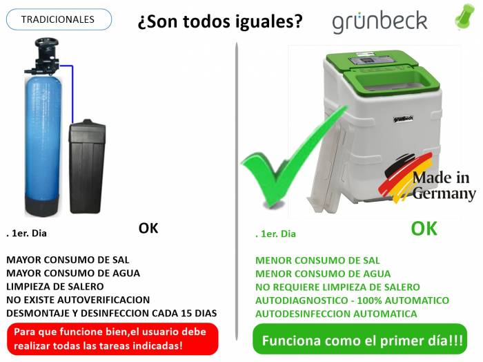 Operación sencilla, económica y autónoma. Equipos diseñados y construidos en Alemania, certificados por la norma DVGW para operar en sistemas de agua potable en VIVIENDAS y sin supervisión permanente (no necesita ser un ingeniero para operar el equipo).